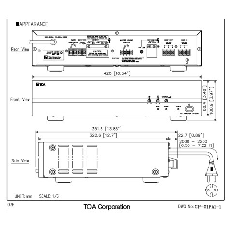 ออกแบบมาเพื่อใช้งานร่วมกับ TOA A-2000 Series Mixer Power Amplifier