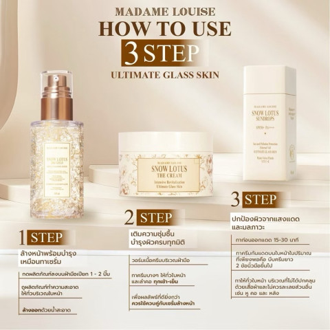 มาดามหลุยส์ สโนว์โลตัส ครีมบัวหิมะ กันแดด บัวหิมะ เซรั่มล้างหน้า บัวหิมะทองคำ 24K บอดี้ครีม ครบชุด Snow Lotus By 4youthailand คือเซ็ตดูแลผิวแบบครบจบในชุดเดียว ตั้งแต่ทำความสะอาด บำรุง เติมความชุ่มชื้น ไปจนถึงช่วยปกป้องผิวในทุกวัน เหมาะสำหรับผู้ที่ต้องการรูทีนดูแลผิวที่ใช้ง่าย ให้ผิวดูนุ่มลื่นและดูสุขภาพดี พร้อมกลิ่นหอมละมุนช่วยเพิ่มความรู้สึกผ่อนคลายในทุกครั้งที่ใช้
