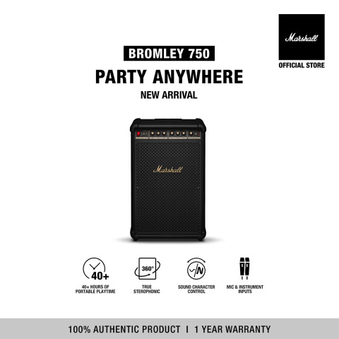 [NEW ARRIVAL] MARSHALL BROMLEY 750 BLACK AND BRASS ลำโพงบลูทูธพกพาดีไซน์คลาสสิกสุดไอคอนิก โทน Black & Brass หรูเท่สะดุดตา เหมาะทั้งเปิดฟังในบ้าน ยกไปปาร์ตี้ หรือเป็นชิ้นแต่งห้องที่บ่งบอกสไตล์แบบ Marshall อย่างชัดเจน มั่นใจได้กับ ของแท้ 100% จาก Marshall Official Store พร้อม รับประกันศูนย์ไทย 1 ปี และ ส่งฟรีทั่วไทย