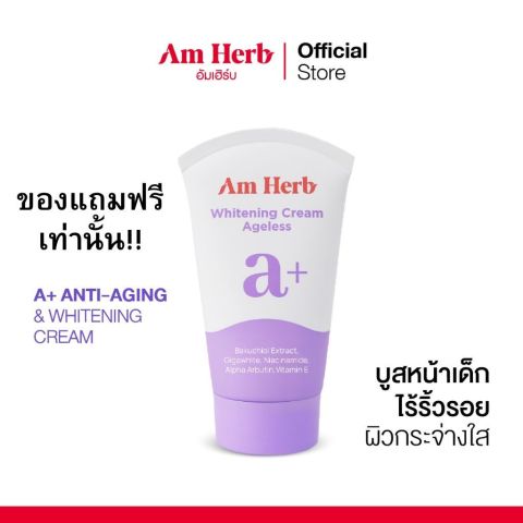[สำหรับโปรแถมฟรี] AM HERB A+ ANTI-AGING & WHITENING CREAM ครีมบำรุงผิวหน้าแอนตี้เอจจิ้ง & ไวท์เทนนิ่ง ขนาด 30g ราคา 9,999.00 บาท ใหม่ล่าสุดจาก AM HERB เข้มข้นขั้นสุดเพื่อผิวดูอ่อนเยาว์ กระชับ และกระจ่างใส ช่วยลดเลือนริ้วรอย พร้อมเติมความชุ่มชื้นให้ผิวดูเรียบเนียน เปล่งปลั่งตั้งแต่ครั้งแรกที่ใช้ ด้วยสารสกัดธรรมชาติและนวัตกรรมสารสกัดพืช 7 ชนิดจากยุโรป