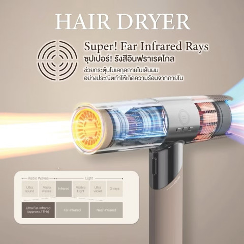 Super Far Infrared Ray ใช้แร่ธรรมชาติพิเศษช่วยทำความร้อนจากด้านใน ลดความแห้งเสีย ให้ผมแห้งไวแบบนุ่มสวย