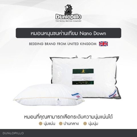 Dunlopillo หมอนขนห่านเทียม Nano Down ป้องกันไรฝุ่น ลดอาการปวดคอ