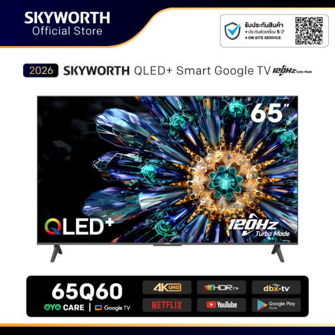 ใหม่ล่าสุด! SKYWORTH QLED+ TV 65" รุ่น 65Q60 ทีวีจอใหญ่ระดับพรีเมียมที่ให้ภาพคมชัด 4K UHD สีสันสดใสด้วยเทคโนโลยี QLED พร้อมระบบ Google TV (Android 14) ใช้งานลื่น โหลดแอพได้จาก Play Store ดู Netflix/YouTube และอีกมากมายได้ทันที เหมาะทั้งดูหนัง ซีรีส์ และเล่นเกมในบ้านแบบเต็มอรรถรส ในราคาเพียง 17,636.40 บาท