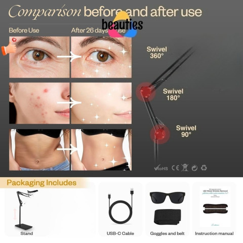 ผสานแสง Amber (เหลืองอำพัน), Red (แดง), Deep Red (แดงเข้ม) และ Infrared (อินฟราเรดใกล้ 850nm) เพื่อผลลัพธ์ที่ครอบคลุมยิ่งขึ้น ช่วยให้ผิวดูเรียบเนียน กระจ่างใส และดูสุขภาพดีเม็ดไฟ LED รวม 528 เม็ด ครอบคลุมพื้นที่กว้าง