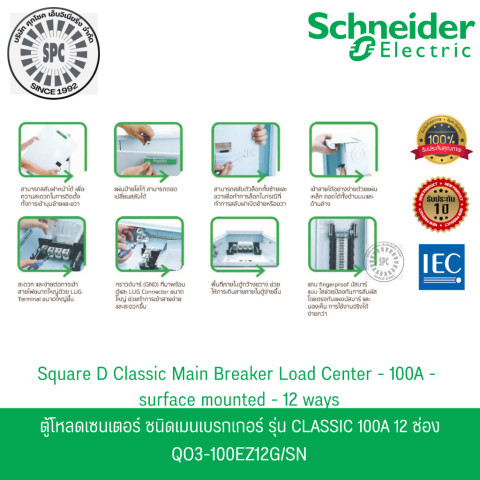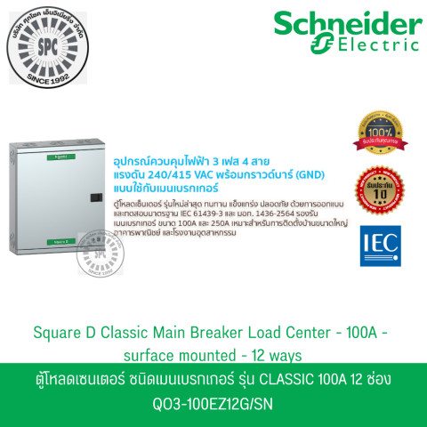 Schneider Electric ตู้โหลดเซ็นเตอร์ แบบเมนเบรกเกอร์ 100A ขนาด 12 ช่อง 3 เฟส 4 สาย รุ่น QO3-100EZ12G/SN ราคา 6,313.00 บาท