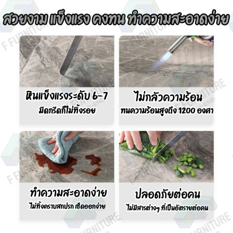 ท็อปโต๊ะ Composite Stone ลวดลายหินอ่อน สวยหรู เช็ดทำความสะอาดง่าย (ลายหินอาจแตกต่างจากภาพเล็กน้อยเนื่องจากลักษณะวัสดุ)