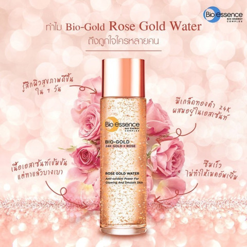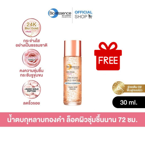 [Not For Sale] Bio-essence Bio-Gold 24k Rose Gold Water 30ml น้ำตบกุหลาบทองคำ (Nano Gold Peptide) สินค้าสมนาคุณขนาดพกพา ที่ช่วยปลุกผิวให้ดูอิ่มน้ำ นุ่มเด้ง และเรียบเนียนทันทีตั้งแต่ครั้งแรกที่ใช้ พร้อมดูแลปัญหาริ้วรอยก่อนวัย กระชับรูขุมขน และช่วยคุมความมัน ให้ผิวดูอ่อนเยาว์กระจ่างใสตลอดวัน