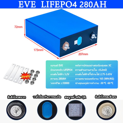 CATL 120Ah LiFePo4 แบตเตอรี่ลิเธียมฟอสเฟตใหม่ 3.2V 280Ah แบตคุณภาพเกรด TOP 5 (EVE LiFePO4) ให้พลังงานสูง ใช้งานทน เหมาะสำหรับงานโซล่าเซลล์ ระบบสำรองไฟ UPS และงานยานยนต์ไฟฟ้า ออกแบบมาเพื่อการใช้งานจริงที่ต้องการความเสถียร ชาร์จไว จ่ายกระแสได้ดี และอายุการใช้งานยาวนาน