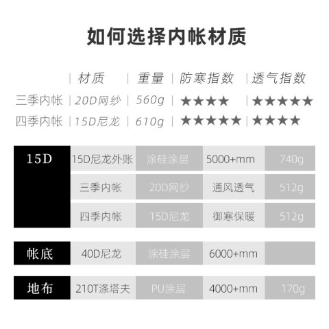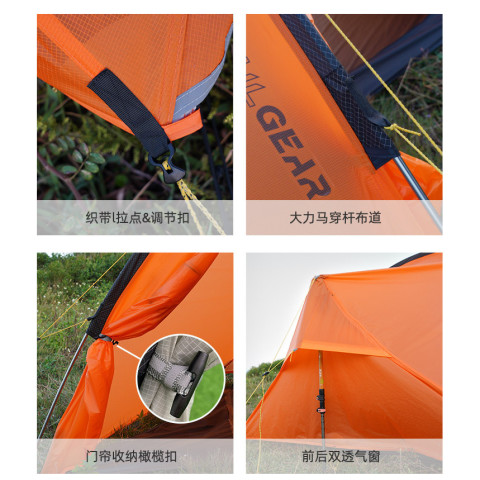 โปร่งสบาย ลดอับชื้น — เต็นท์ด้านในเป็น ตาข่าย 20D ระบายอากาศดี หลับสบายในคืนที่อากาศอบอ้าว