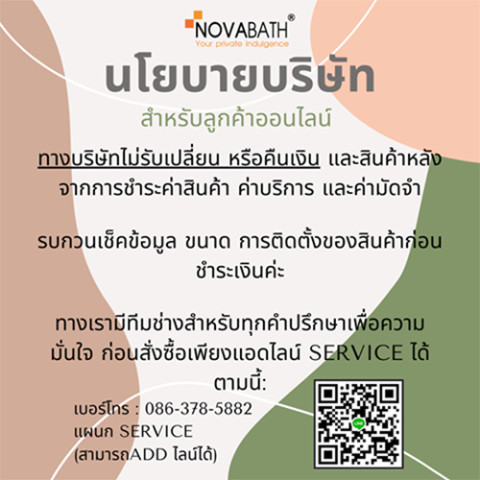มั่นใจคุณภาพจาก บริษัท โนวาเทร็นด้า จำกัด ผู้นำเข้าสินค้ามากกว่า 40 ปี แบรนด์ NOVABATH มีทีมช่างและอะไหล่พร้อมดูแลหลังการขายตามเงื่อนไขการรับประกันของบริษัท