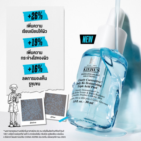 Kiehl's Clearly Corrective Daily Re-Texturizing Triple Acid Peel 30 ml ผลัดเซลล์ผิวแบบอ่อนโยน เพื่อผิวดูเรียบเนียน กระจ่างใส และรูขุมขนดูกระชับ
