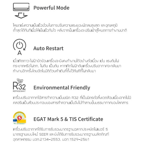 SEER: 13.35 | ฉลากประหยัดไฟเบอร์ 5 (ฉลากใหม่)