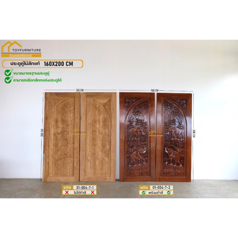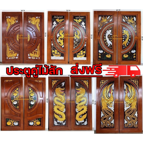จัดส่งฟรี ! ประตูคู่เสริมฮวงจุ้ยไม้สักแท้ 160X200 CM ราคา 17,800.00 บาท
