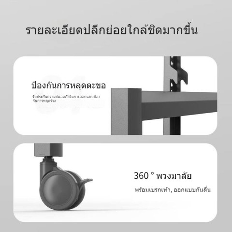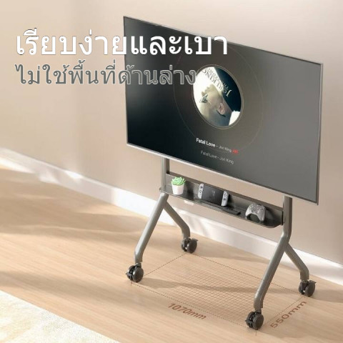 การใช้งาน: ขาตั้งทีวีแบบเคลื่อนที่ พร้อมล้อเลื่อนและขาแขวน (hanging legs) เพื่อความมั่นคง