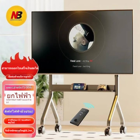 NBP150 ขาตั้งทีวีล้อเลื่อนอัจฉริยะ สำหรับทีวี 55-90 นิ้ว ดีไซน์พรีเมี่ยม แข็งแรง ฐานกว้างมั่นคง เคลื่อนย้ายสะดวกด้วยล้อหมุน 360° พร้อมระบบล็อค เหมาะทั้งห้องนั่งเล่น ห้องประชุม ร้านค้า หรือการจัดอีเวนต์ ช่วยยกระดับการติดตั้งทีวีให้เป็นระเบียบด้วยช่องซ่อนสายด้านหลัง ดูเรียบสวยทุกมุมมอง