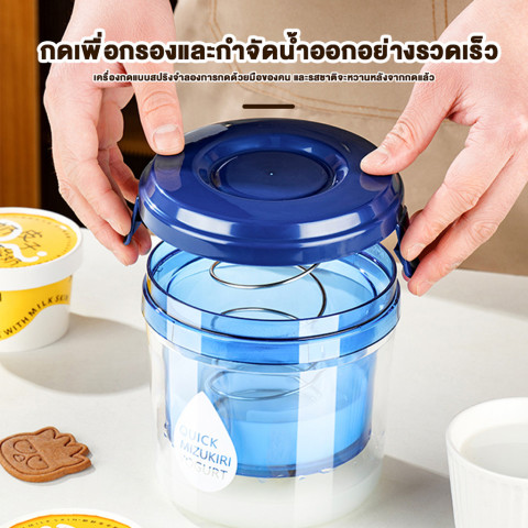 ระบบสปริงกด ช่วยแยกน้ำออกอย่างสม่ำเสมอ เปลี่ยนโยเกิร์ตธรรมดาให้เป็นโยเกิร์ตกรีกตามเวลาที่ต้องการ