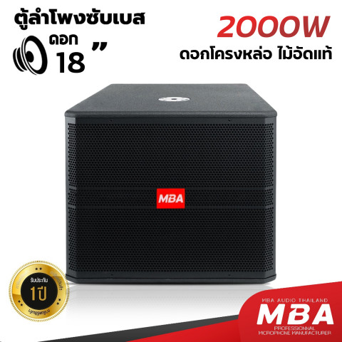 MBA AUDIO THAILAND ตู้ลำโพงซับเบส 10/15/18 นิ้ว (ราคาต่อ 1 ใบ) ตู้ซับเบสพาสซีฟงานประกอบคุณภาพจาก ตู้ไม้อัดแท้ ให้โทนเบสหนักแน่น กระหึ่ม คุมย่านต่ำได้ดี ดีไซน์สวยดูหรู เหมาะสำหรับงานเครื่องเสียงกลางแจ้ง, เวที, ร้านอาหาร/ผับ, ห้องซ้อม หรือชุด PA ที่ต้องการพลังซับแบบจริงจัง