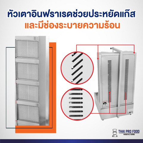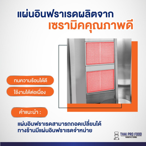 ปรับระยะได้ เลื่อนแผ่นอินฟราเรดเข้า-ออก เพื่อคุมความร้อนให้เหมาะกับปริมาณเนื้อ