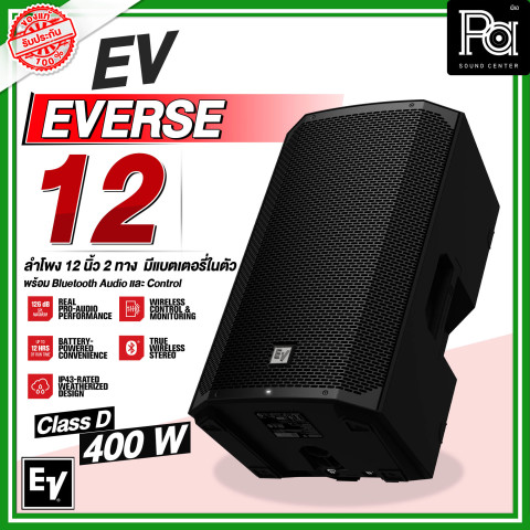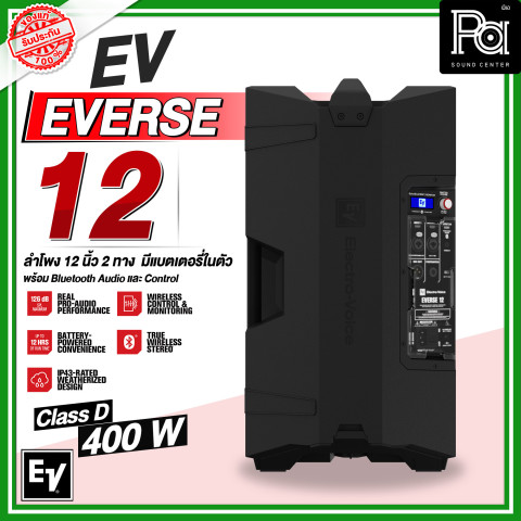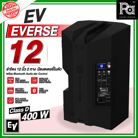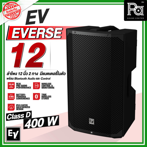 EV EVERSE 12 Electro-Voice ตู้ลำโพงแอคทีฟ Bluetooth ขนาด 12 นิ้ว แบบ 2 ทาง กำลังขับ 400W พร้อมแบตเตอรี่ในตัวและการควบคุมผ่านแอป EV QuickSmart Mobile ให้พลังเสียงระดับโปร พกพาง่าย และพร้อมลุยงานนอกสถานที่ได้จริง ไม่ว่าจะเป็นร้องเพลงคาราโอเกะ เล่นดนตรีสด ดีเจ งานอีเวนต์ หรือกิจกรรมกลางแจ้งที่ต้องการ “ดัง ชัด เบสลึก” แบบจบในใบเดียว