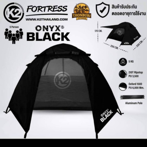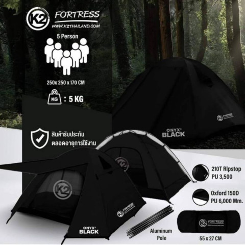 เต็นท์ K2 FORTRESS ONYX BLACK เต็นท์ทรงแข็งแรงพร้อมเสาโครงอลูมิเนียม น้ำหนักเบา เหมาะสำหรับการแคมป์ปิ้งแบบครอบครัวหรือกลุ่มเพื่อน รองรับ 4-5 คน ใช้งานได้มั่นใจด้วยวัสดุกันน้ำระดับสูง ทั้งฟลายชีทและพื้นเต็นท์ พร้อมอุปกรณ์ครบชุด เปิดกางได้ทันทีในทริปต่อไป