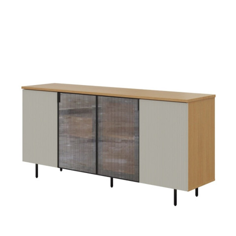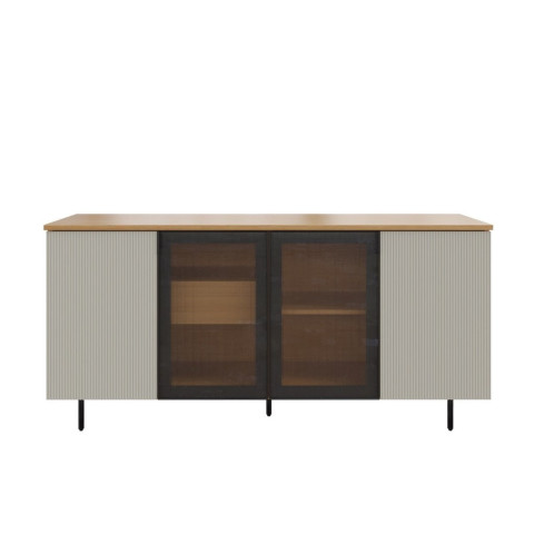 SB Design Square ชั้นวางทีวี ขนาด 160 ซม. รุ่น Whiz จากแบรนด์ SB FURNITURE เติมบรรยากาศห้องนั่งเล่นให้ดูอบอุ่นและมีสไตล์ด้วยโทนสีใหม่ Magic Grey (เทาอ่อนนวลตา) ตัดกับลายไม้ Monaco Oak ที่ช่วยให้ห้องดูละมุนขึ้นแบบลงตัว ดีไซน์หน้าบานลอนคลื่นเพิ่มมิติให้ความเรียบง่ายดูมีเสน่ห์ พร้อมผิวสัมผัส PVC Soft Touch นุ่มมือ และหน้าบานกระจกลอนกรอบอะลูมิเนียมสีดำ สร้างฟีลลิ่งแบบ Studio เท่ ๆ เหมาะทั้งเป็นชั้นวางทีวี หรือใช้เป็นตู้เก็บของ/วางโชว์บริเวณโถงทางเดิน