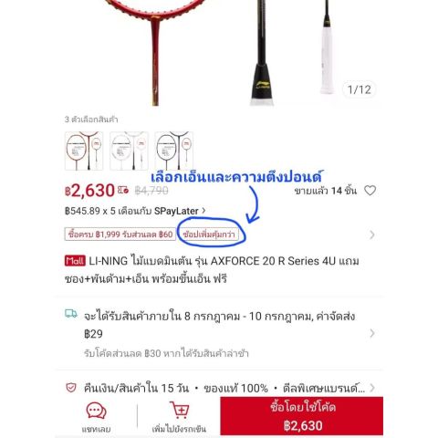 หากเลือก อัพเกรดเอ็น จะ ไม่แถม เอ็นรุ่น N9/AP6 (กรุณาเลือกเอ็นอัพเกรด 1 ชิ้น ต่อ 1 ไม้)