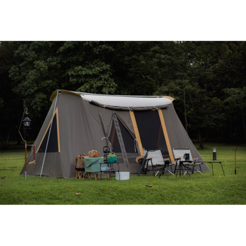 เต็นท์แคนวาสตัวใหญ่ทรงสวย สำหรับสายแคมป์ที่ต้องการพื้นที่ใช้สอยกว้าง นอนสบาย อากาศถ่ายเทดี พร้อมดีไซน์ที่ใช้งานจริงทั้งช่องปลั๊กไฟและช่องท่อแอร์ เหมาะทั้งตั้งแคมป์ยาวๆ และทริปครอบครัว พร้อม ผ้าคลุมกันฝน (Rain Cover) แถมฟรี ในชุด