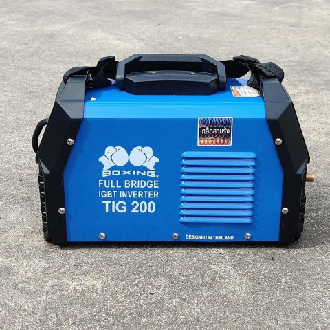 เครื่องเชื่อม TIG 200 BOXING (เฉพาะเครื่อง ไม่แถมเกจ์) ราคา 6,300.00 บาท เครื่องเชื่อมทิกสำหรับงานต่อเติมทั่วไป ใช้ไฟบ้าน 220V ให้กระแสเชื่อม เต็ม 200A ด้วยระบบ Full Bridge IGBT แบบอินเวอร์เตอร์ ช่วยประหยัดไฟและให้การอาร์คนิ่ง เสถียร เชื่อมนิ่ม ทนทาน เหมาะสำหรับงานเชื่อม DC ที่ต้องการแนวเชื่อมสวย สามารถเชื่อมเกล็ดสายรุ้งได้ดี และยังรองรับการใช้งานร่วมกับเครื่องปั่นไฟได้อีกด้วย