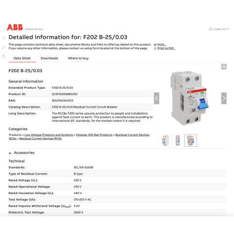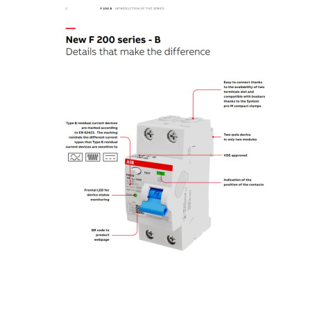 ABB เบรกเกอร์กันดูด RCCB F202B 2P Type B (63A) ตัดกระแสรั่ว 30mA ราคา 16,372.80 บาท ออกแบบมาเพื่อเพิ่มความปลอดภัยสูงสุดให้ระบบไฟ 1 เฟส (L + N + PE) โดยเฉพาะงานติดตั้ง EV Charger, Inverter และ UPS ด้วยความสามารถแบบ Type B (All-current sensitive) ตรวจจับกระแสรั่วได้ทั้ง AC + Pulsating DC + Smooth DC เมื่อพบกระแสรั่วเกิน 30mA จะตัดวงจรอย่างรวดเร็วภายในไม่กี่มิลลิวินาที ลดความเสี่ยงไฟดูดและไฟรั่วได้อย่างมีประสิทธิภาพ