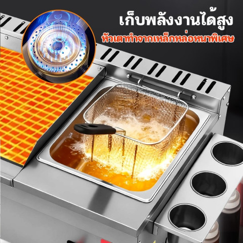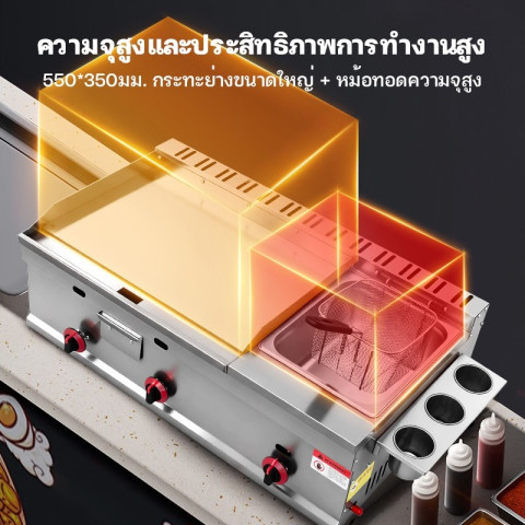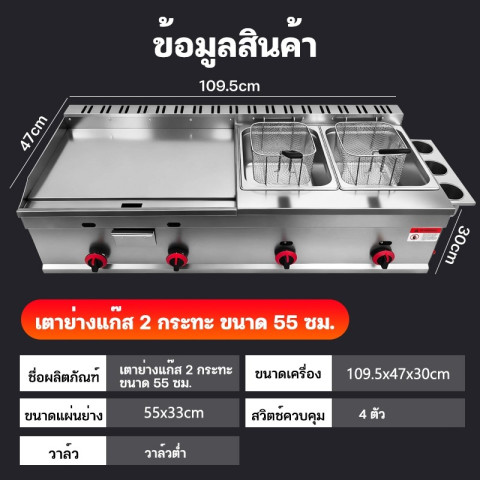 ประเภท: เตาย่าง/เตาทอดระบบแก๊ส แบบหน้าเรียบ พร้อม 2 หม้อทอด
