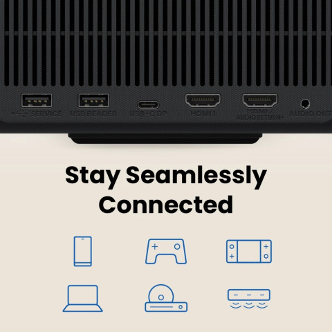เชื่อมต่อง่าย ครบจบ มีทั้ง HDMI 2.1, USB-C, USB-A และ Bluetooth 5.2 พร้อมระบบแคสต์ไร้สาย AirPlay/Google Cast