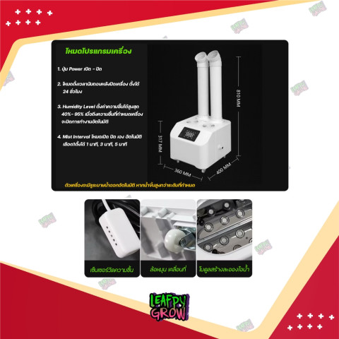 20KG: 600W / 20,000 ml/h / ท่อพ่นหมอก 1 หรือ 2 ท่อ