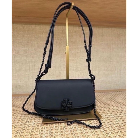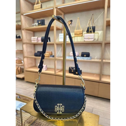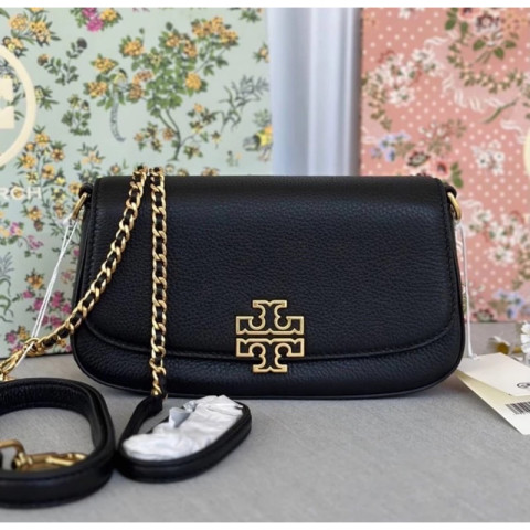 ทรงสวย สะพายง่าย Tory Burch Britten Convertible Crossbody (No. 138772 / 143920) สีดำ กระเป๋าสะพายข้างดีไซน์เรียบหรู ใช้งานได้หลากหลายวัน ถือก็สวย สะพายก็คล่อง เหมาะทั้งลุคทำงานและลุควันสบาย ๆ