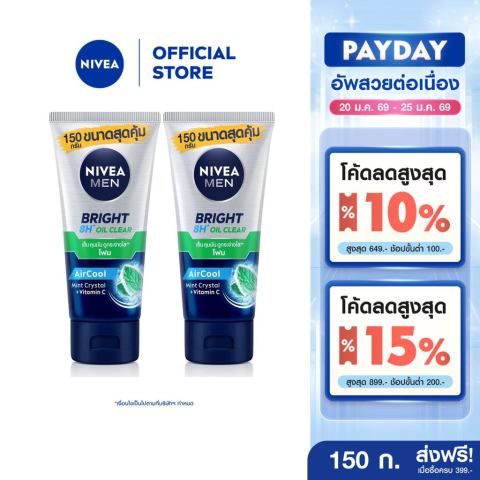 นีเวีย เมน โฟมล้างหน้า ไบรท์ ออยล์ เคลียร์ 150 กรัม (แพ็ค 2 ชิ้น) NIVEA Men Bright Oil Clear Foam