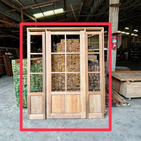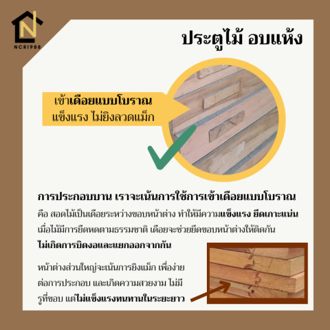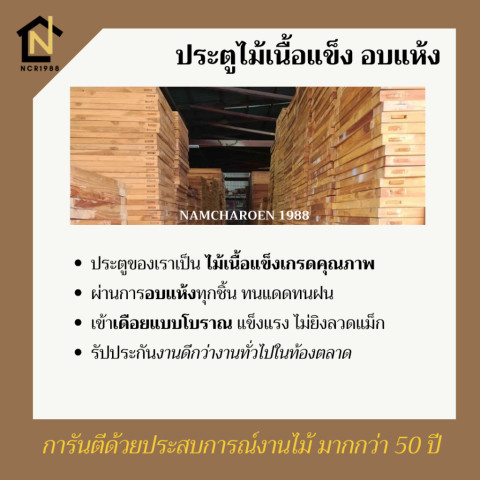บานประตู: ไม้ตะแบก หรือไม้เต็งไทย ขอบหนา 5 นิ้ว