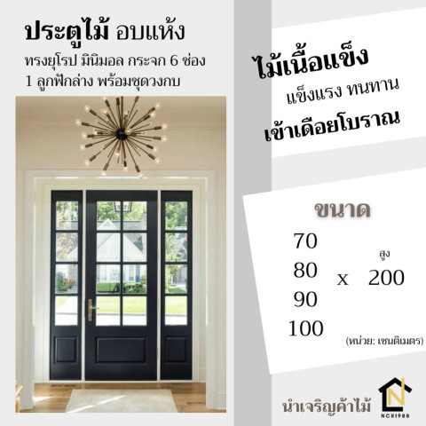รูปแบบบาน: ไม้เนื้อแข็ง กระจก 6 ช่อง พร้อมลูกฟักล่าง