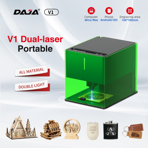 DAJA V1 Laser Engraving Machine เครื่องแกะสลักเลเซอร์ขนาดกะทัดรัดที่ออกแบบมาเพื่อสายงานทำของขวัญ งาน DIY และงานปรับแต่งลวดลายแบบมืออาชีพ ใช้งานได้หลากหลายบนไม้ พลาสติก อะคริลิก และโลหะ (ขึ้นอยู่กับชนิดหัวเลเซอร์) พร้อมโครงสร้างแข็งแรงและมีฝาครอบป้องกัน รวมถึงพัดลมดูดอากาศและคอลัมน์ยก ช่วยให้ทำงานได้สะดวกและเป็นระเบียบมากขึ้น