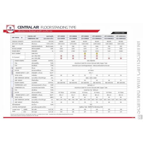 CENTRAL AIR แอร์ตู้ตั้ง รุ่น ME-SERIES NEW2024 (FIXSPEED) ขนาด 24,600–60,000 BTU ราคา 55,428.00 บาท