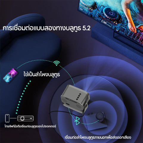 ฉายได้ใหญ่ 30–150 นิ้ว ปรับให้เข้ากับห้องเช่า ห้องนั่งเล่น หรือดูนอกบ้านได้สบาย