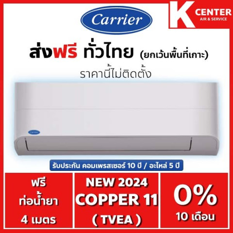 🌈ส่งฟรี🌈 แอร์ผนัง CARRIER รุ่น COPPER 11 (TVEA) ระบบ INVERTER พร้อม WiFi | เฉพาะตัวเครื่อง + ท่อทองแดง | รับประกันศูนย์