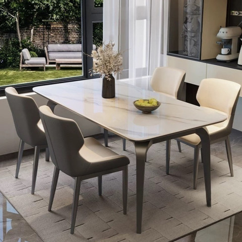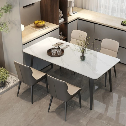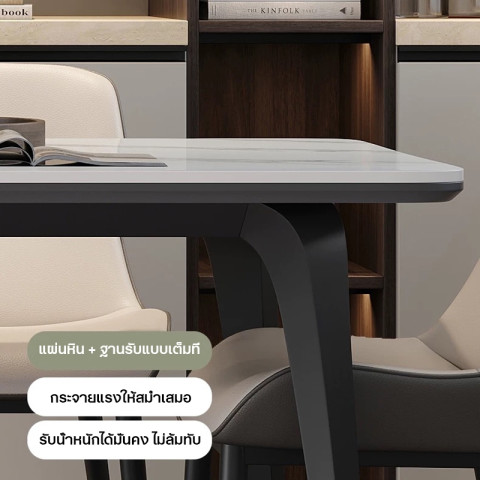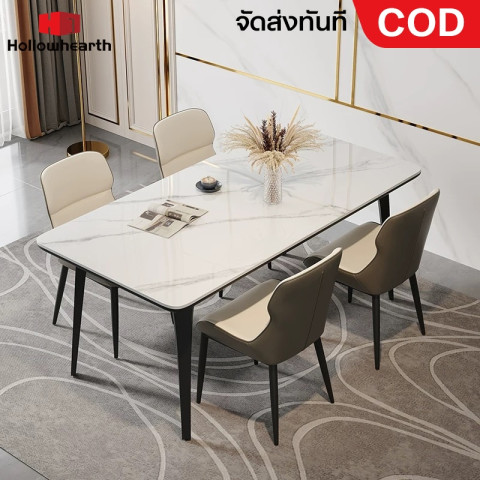 โต๊ะครัว/โต๊ะทานอาหารสไตล์สมัยใหม่ Hollowhearth (รุ่น E) โต๊ะหินสังเคราะห์ลายหินอ่อน ดีไซน์โมเดิร์นสำหรับบ้าน รองรับได้ 4-8 ที่นั่ง เติมบรรยากาศให้มื้ออาหารดูเรียบหรู อบอุ่น และใช้งานได้จริงในทุกวัน