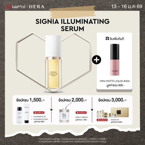 HERA SIGNIA ILLUMINATING SERUM เซรั่มบำรุงผิวระดับพรีเมียมจากไลน์ SIGNIA ที่ช่วยปลุกผิวให้ดูสว่าง กระจ่างใส และเปล่งประกายอย่างเป็นธรรมชาติ พร้อมเติมความชุ่มชื้นให้ผิวดูอิ่มฟู ลดความหมองคล้ำที่สะสมจากความเครียด แสงแดด และการพักผ่อนไม่เพียงพอ เหมาะสำหรับผู้ที่ต้องการ “ผิวโกลว์” แบบสุขภาพดีในทุกวัน