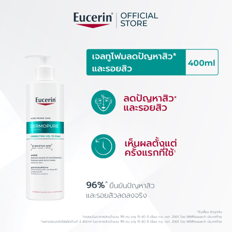 Eucerin DERMOPURE CLINICAL CORRECTING GEL TO FOAM 400 ml ยูเซอริน เดอร์โมเพียว คลินิคอล คอร์เรคติ้ง เจล ทู โฟม คลีนเซอร์