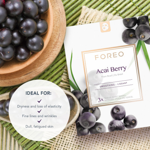 เติมช่วงเวลาผ่อนคลายให้ผิวด้วย FOREO Farm To Face Sheet Mask – Acai Berry ชีทมาส์กที่ใช้ง่ายเพียงวางแผ่นมาส์กลงบนใบหน้า แล้วปล่อยให้เอสเซนส์ค่อยๆ ซึมซาบเพื่อบำรุงผิวอย่างอ่อนโยนภายใน 20 นาที ให้คุณได้ดื่มด่ำกับการดูแลผิวแบบสปาที่บ้าน พร้อมสัมผัสผิวที่ดูสดชื่นและนุ่มขึ้นหลังใช้