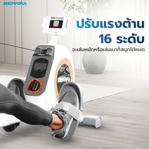 [ผ่อน0% 10 เดือน] Merrira Riverie RW-50 Rower Machine เครื่องกรรเชียงบกสำหรับคาร์ดิโอและฝึกกล้ามเนื้อครบทั้งตัว มาพร้อมระบบแรงต้านแม่เหล็กปรับได้ 16 ระดับ ให้คุณคุมความหนักเบาได้ตามเป้าหมาย ไม่ว่าจะเบิร์นไขมัน เพิ่มความฟิต หรือเสริมความแข็งแรงของกล้ามเนื้อ พร้อมจานล้อ 6 กก. ช่วยให้การดึงลื่นไหลต่อเนื่อง เสียงเงียบ เหมาะสำหรับออกกำลังกายที่บ้าน