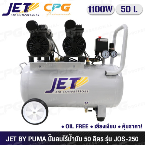 [สินค้ามีตัวเลือก] JET by Puma ปั๊มลมแบบไร้น้ำมัน (Oil Free) ถัง 50 ลิตร 1,100W รุ่น JOS-250 ราคา 6,880.00 บาท