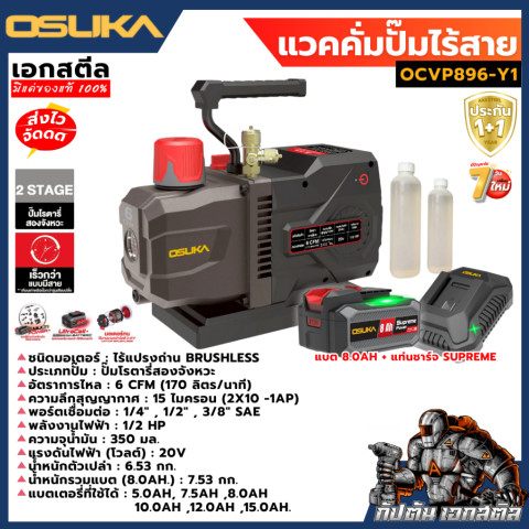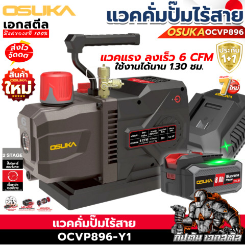 (ราคาพิเศษ) OSUKA ปั๊มแวคคั่มไร้สาย OCVP896-Y1 6CFM เซ็ทแบต 8.0Ah + ที่ชาร์จ รับประกัน 1+1 ปี