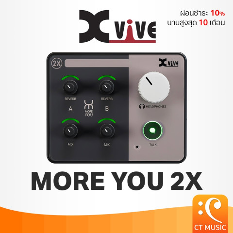 Xvive More You 2X Audio Interface (MoreYou 2X) คือหน่วยขยาย (Expansion Unit) สำหรับระบบมอนิเตอร์ส่วนตัว More You ที่ออกแบบมาเพื่อการซ้อม/บันทึกเสียงแบบมืออาชีพ ช่วยให้ผู้เล่นแต่ละคนควบคุมอินพุตของตัวเองได้อย่างอิสระ ทั้งระดับมอนิเตอร์และรีเวิร์บ พร้อมระบบ Talkback ในตัว สื่อสารกันได้ทันทีโดยไม่ต้องถอดหูฟัง