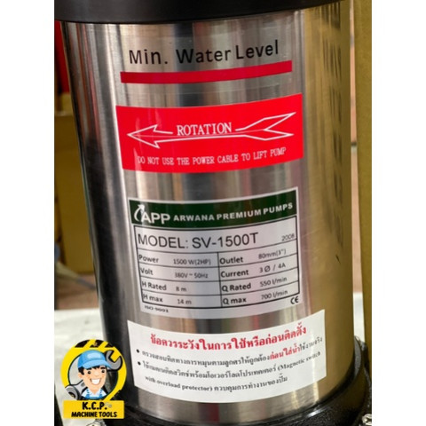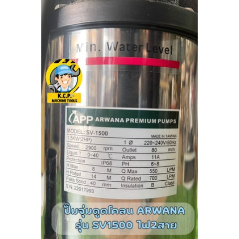 ปั๊มจุ่มดูดโคลน ARWANA 2 แรง ท่อ 3 นิ้ว รุ่น SV1500(A) / SV1500T(A) ราคาพิเศษ 16,500.00 บาท ปั๊มแช่ดูดโคลนกำลังสูง 1500 วัตต์ ออกแบบสำหรับงานหนัก ดูดน้ำเสีย โคลน ตะกอน และสิ่งเจือปนได้คล่อง ลดปัญหาใบพัดติดขัดด้วยระบบ Non-clog เหมาะทั้งงานอาคาร งานก่อสร้าง และงานเกษตรที่ต้องการความทนทานและปริมาณน้ำมาก