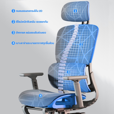 พนักพิงตาข่ายระบายอากาศ ช่วยให้หลังไม่อับชื้น เหมาะกับการนั่งทำงานทั้งวัน